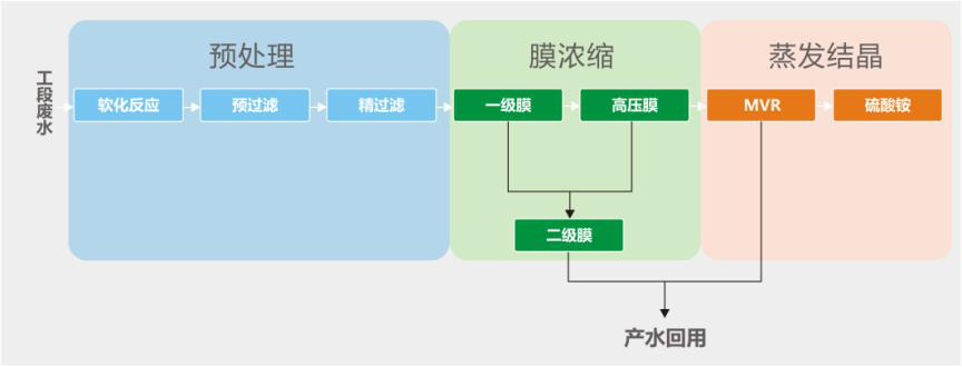 設(shè)計工藝:預(yù)處理+集成膜技術(shù)+MVR